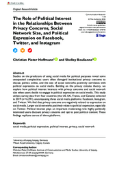 The role of political interest in the relationships between privacy concerns, social network size, and political expression on Facebook, Twitter, and Instagram